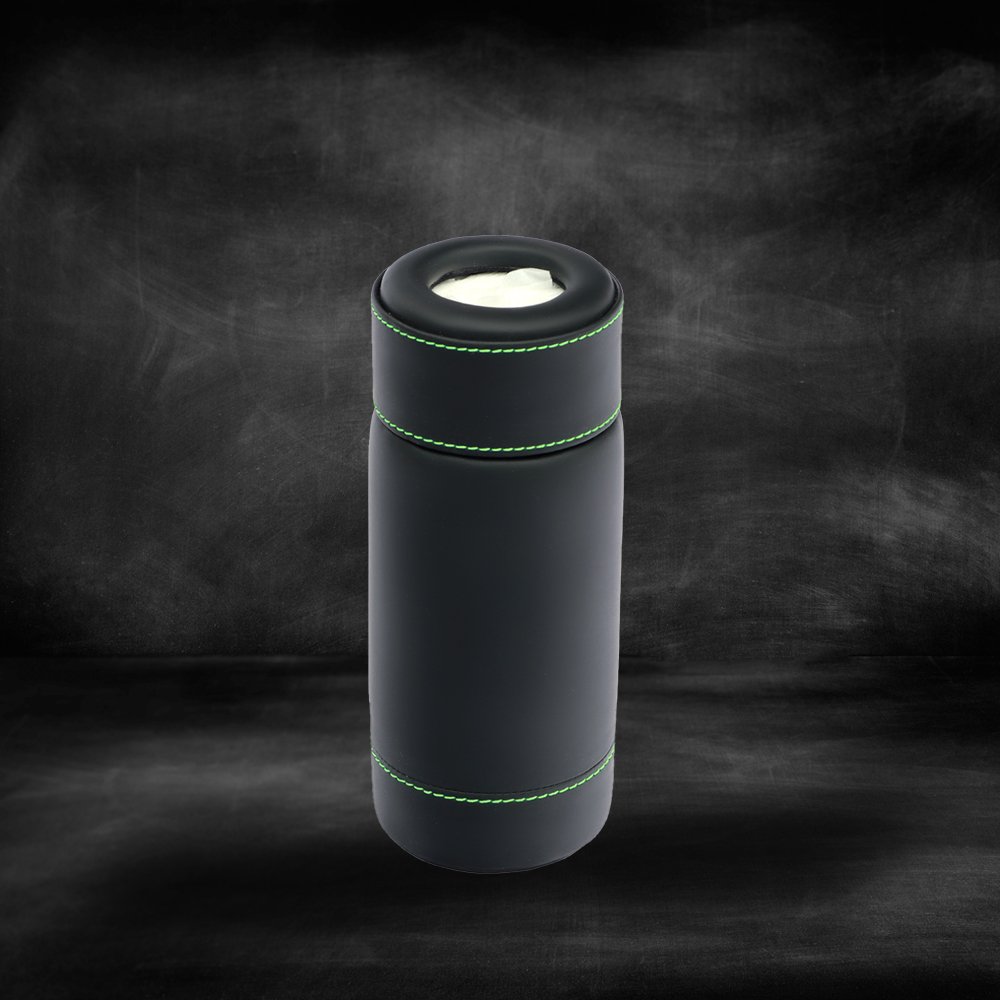 Amato Automotive Car Tissue Tube in Black/Green – Stylish PU leather cylinder tissue box for car cup holders. Holds up to 50 tissues, ensuring convenience and elegance on the go